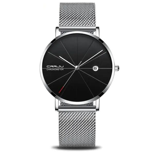CRRJU Slim Calendar Watch with Mesh Band